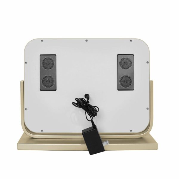 With its ultra-bright, dotted LED lighting offers three settings—cool, warm, and natural—for perfect illumination in any setting. With built-in Bluetooth speakers, enjoy your favorite music or podcasts as you get ready. Touch controls and adjustable brightness make this sleek, modern mirror a must-have for any vanity.