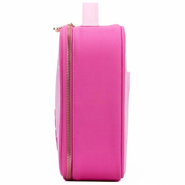 When you unzip the bag, you’ll be greeted by the iconic Barbie silhouette and palm trees, transforming the spacious interior into a miniature paradise. Designed for ultimate convenience, it comes with removable dividers, a handy mesh pocket, a vinyl-lined brush holder flap, and an extra zippered interior pocket.