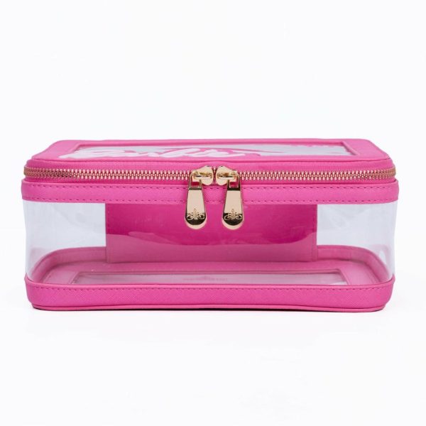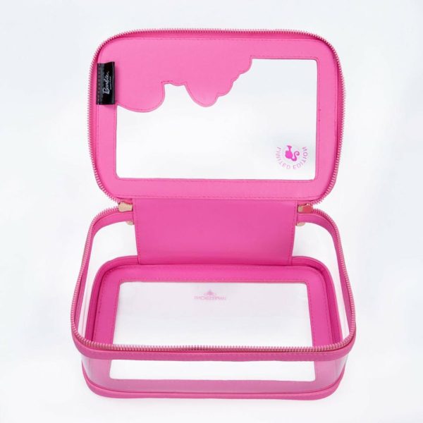 Bring your beauty essentials with you in this Barbie™ Makeup Carry Case. This special edition carrier features a puff embossed Barbie logo on the front, and transparent panels making it easy to find the items you need in style. Designed for convenience and style, it comes with a comfortable top handle, a roomy interior to accommodate all your daily must-haves, and a gold-branded Impressions Vanity zipper for that touch of luxury. The classic Barbie pink finish adds a pop of color and a dash of personality to your beauty arsenal.