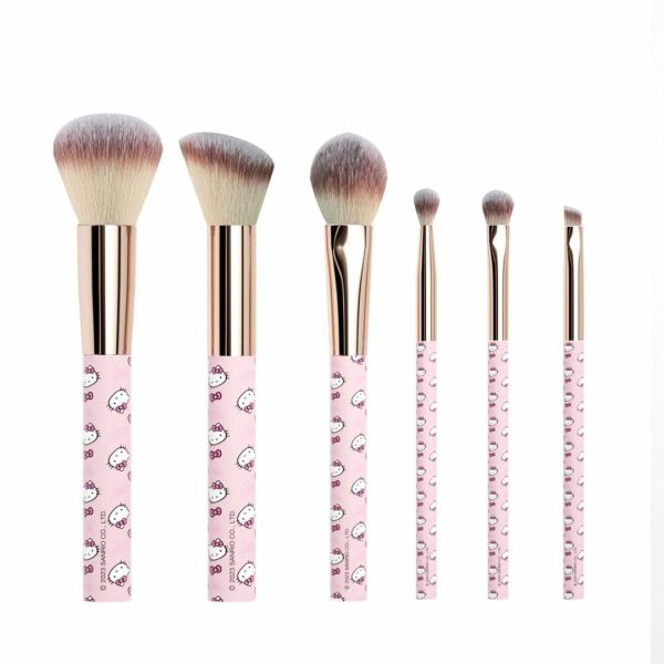 This Hello Kitty® Supercute Signature 6-PC Brush Gift Set is a star essential for any makeup lover or collector. It includes six pieces of professional-grade makeup brushes nestled on a pink stand base and a transparent 3D Hello Kitty cloche to protect the brushes from dust!