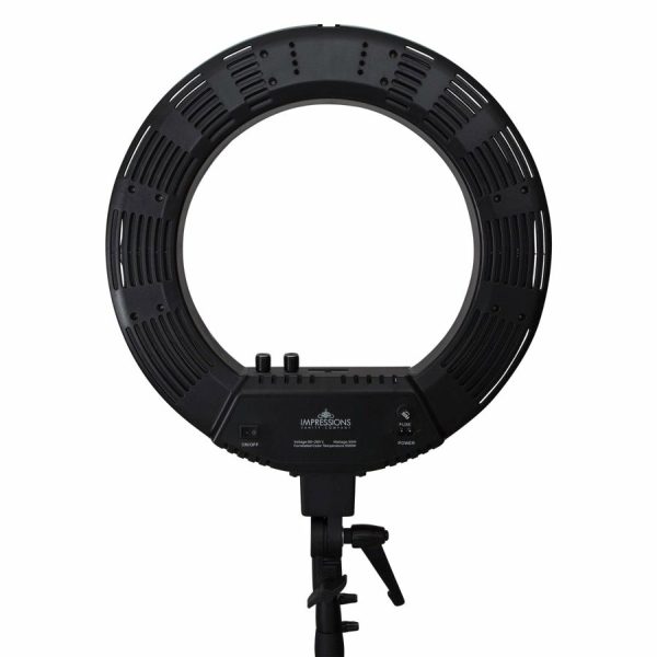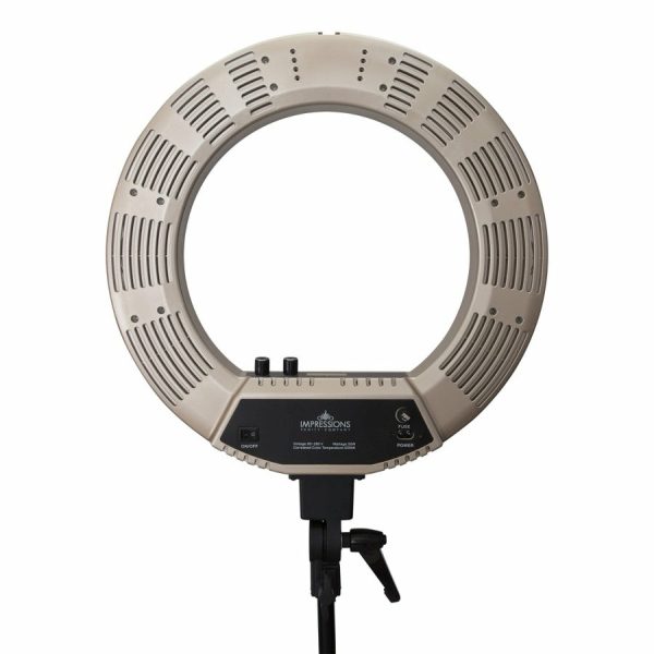 The Impressions Vanity® 18-inch DuoTone LED Vanity Studio Ring Light bundles together the basics to give you the absolute perfect setup. Featuring perfectly diffused dimmable LED lights that transitions from cool to warm white with a simple turn of the dial, it also includes a svelte nylon carry case, adjustable stand, and phone mount.