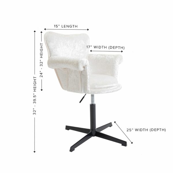Fit snuggly and comfortably with the Mary vanity chair! This ergonomic chair features cushioned seat, backrest and armrests. This vanity chair swivels 360-degrees and easily adjust the height