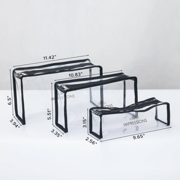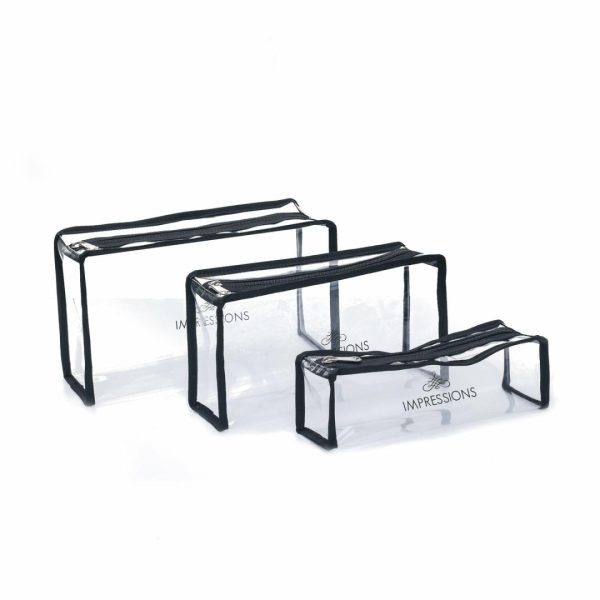 This transparent cosmetic bag set comes with 3 different size plastic pouches to keep your cosmetics organized. Chic and functional, this cosmetic bag set is great for taking your favorite products on the go or keeping them organized in one handbag.